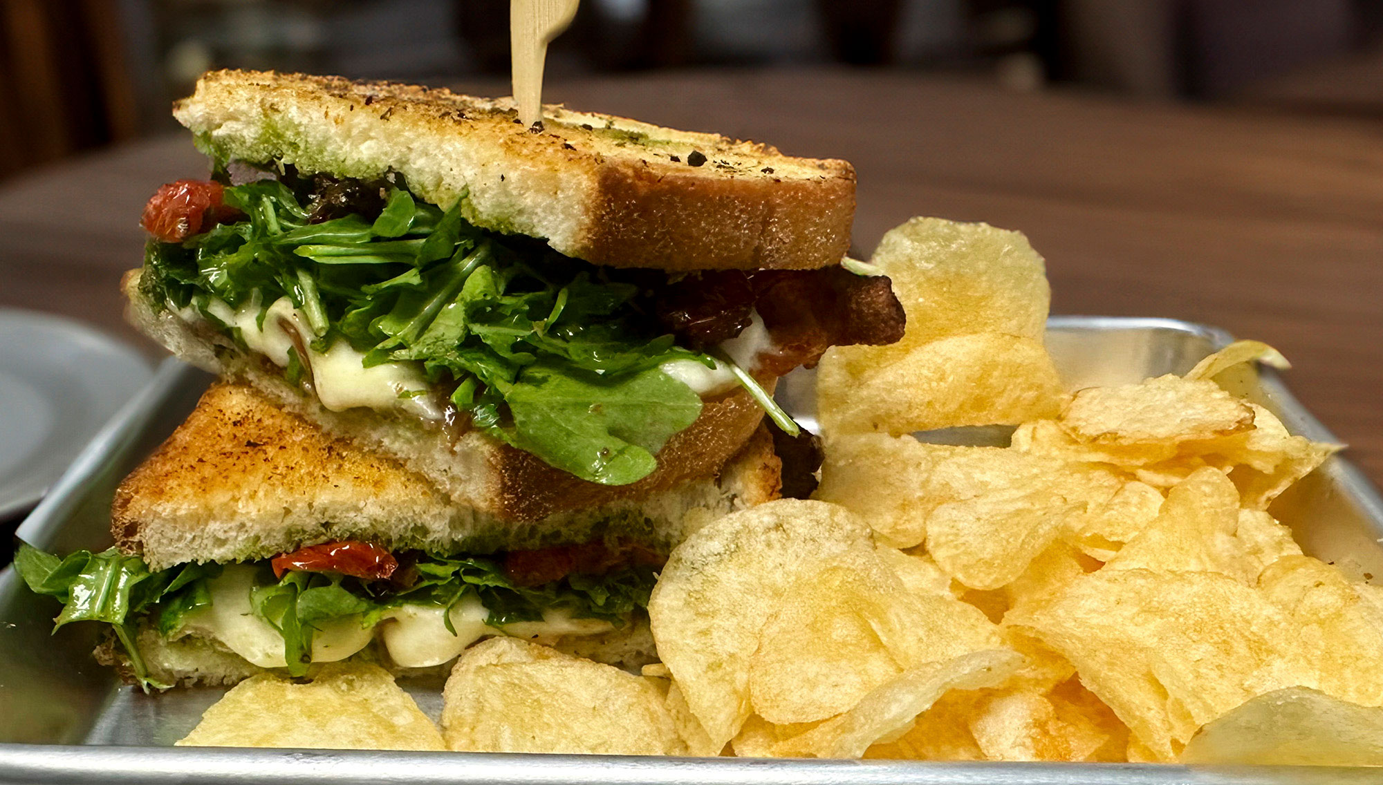 roasted chicken breast* with choice of sauce, topped with lettuce, tomato, coleslaw, and pickled onions. Served on toasted ciabatta. $16