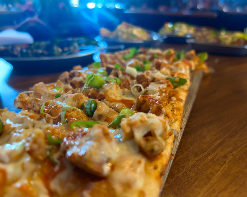 three cheese blend, with a smear of feta, topped with roasted tomatoes and caramelized onions. Served on a golden italian bread. $14